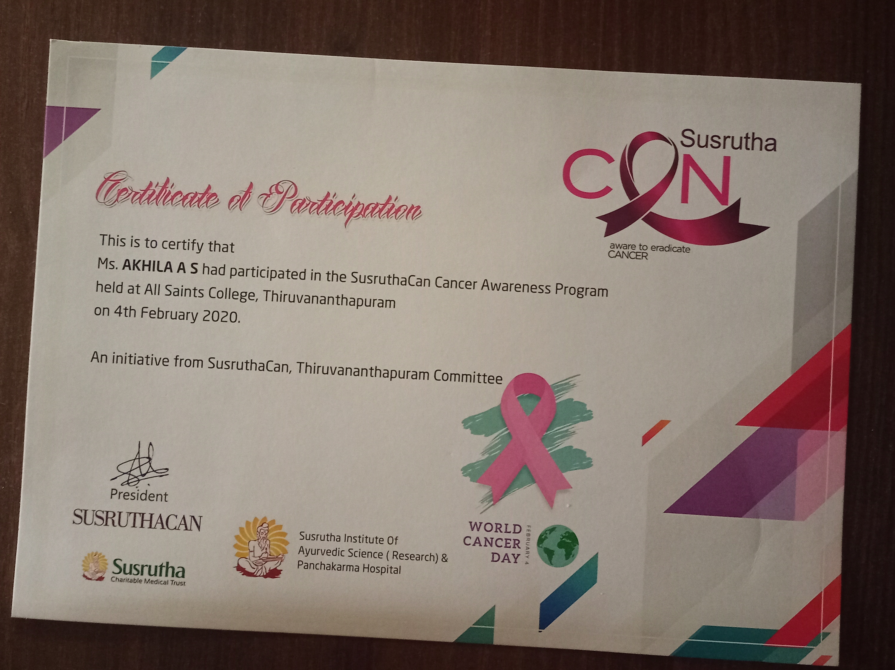 | 4 | Akhila Cancer awareness | |