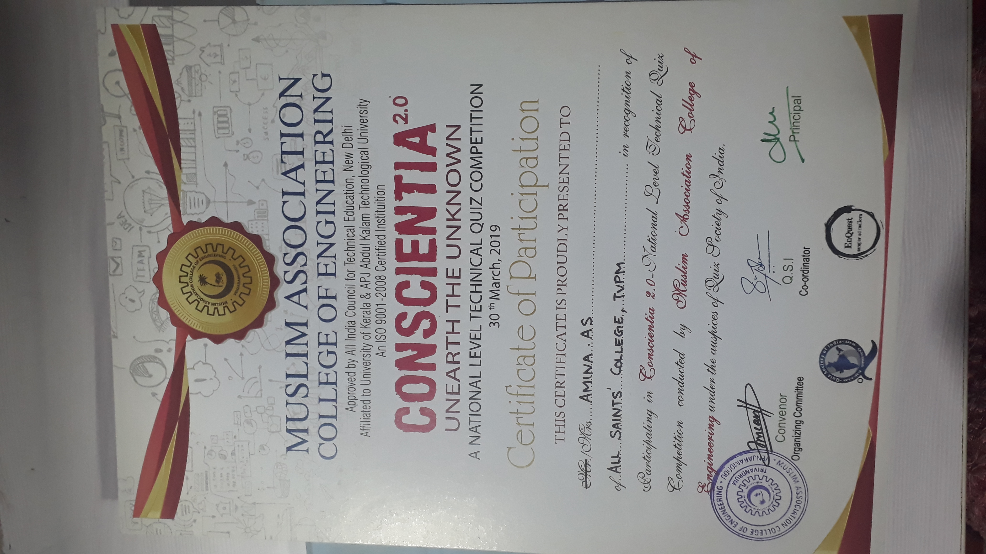 | 2 | AMina AS INTERCOLLEGIATE QUIZ | |