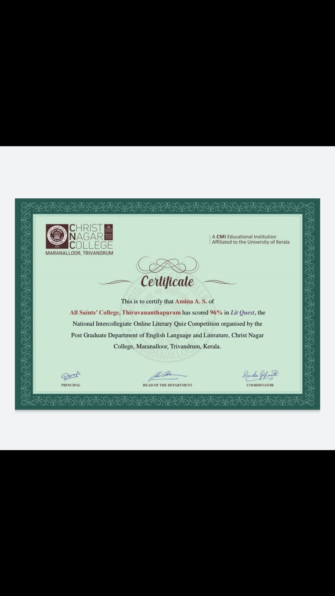 | 15 | AminaAS, LitQuest,Chrst Nagar | |