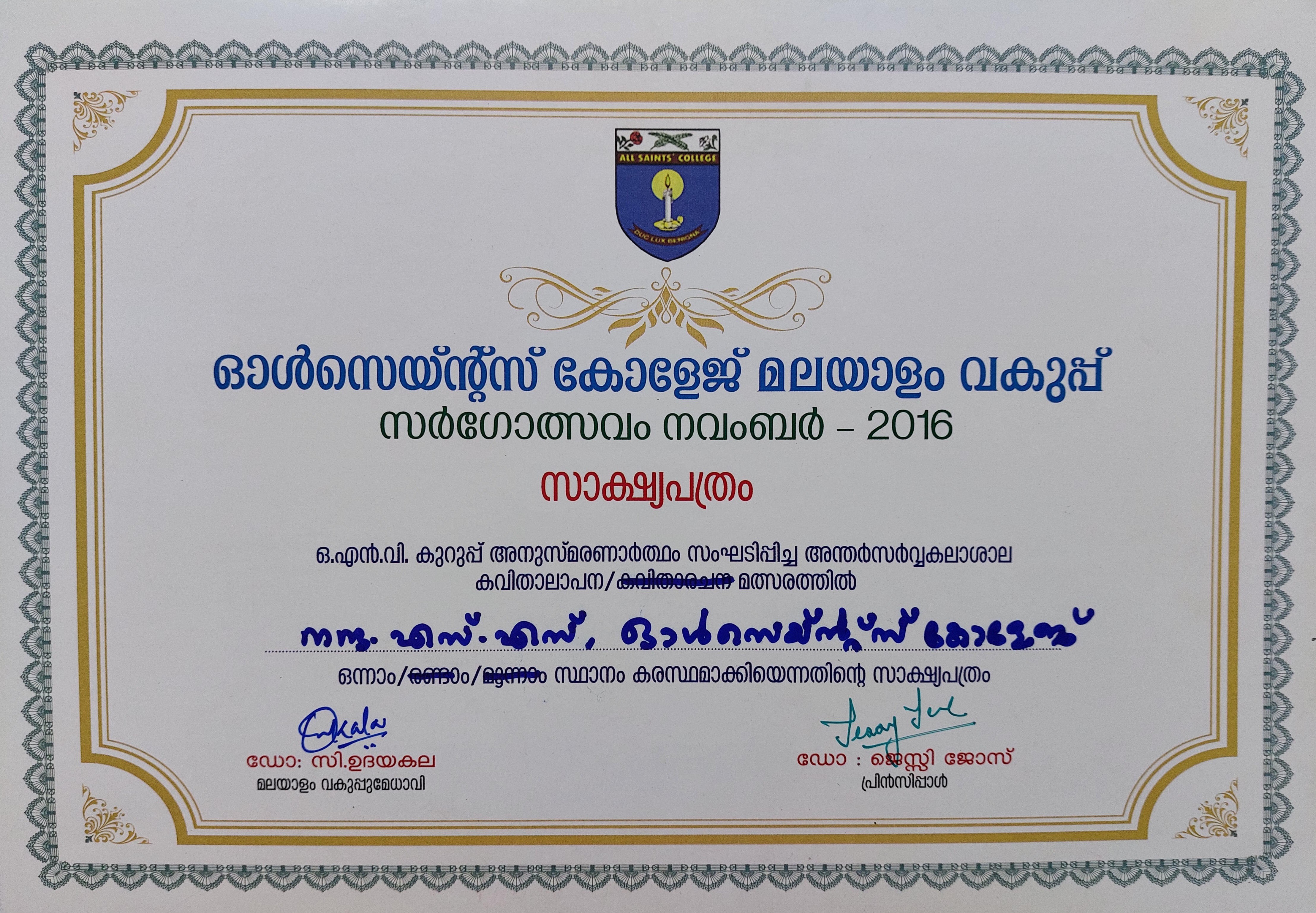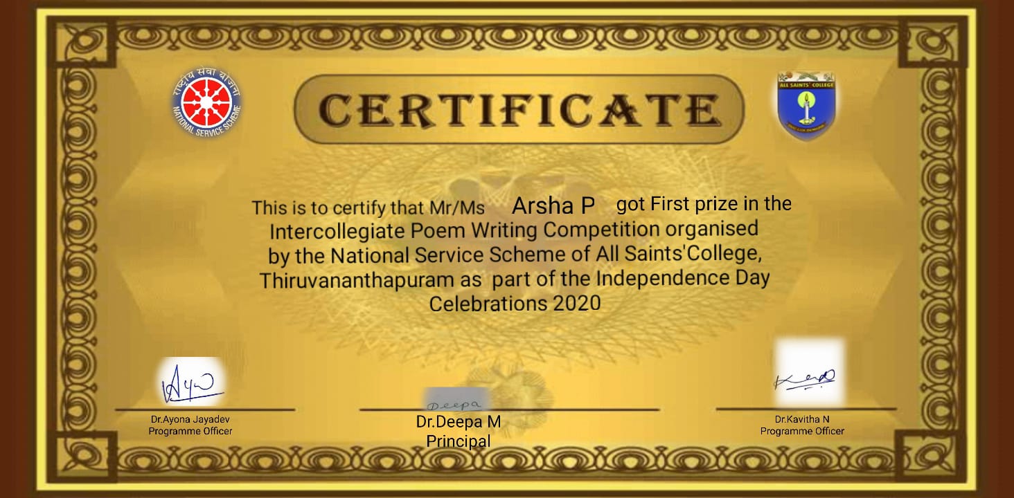 | 16 | Arsha intercollegiate poem writing | |