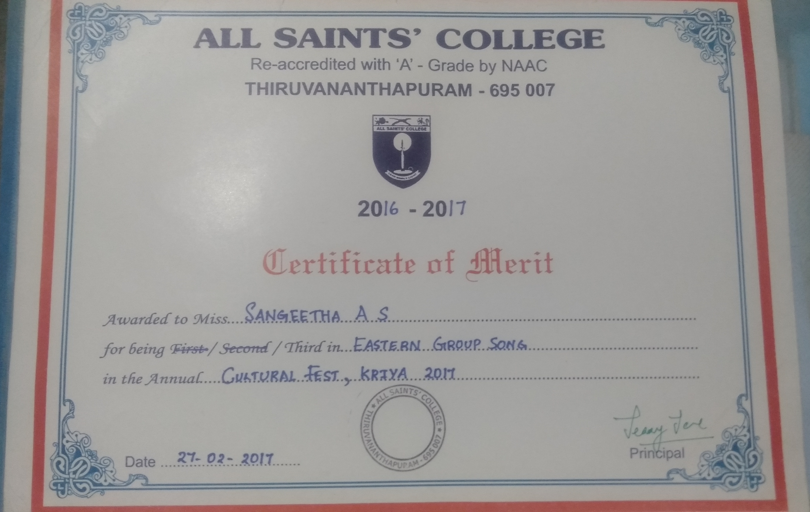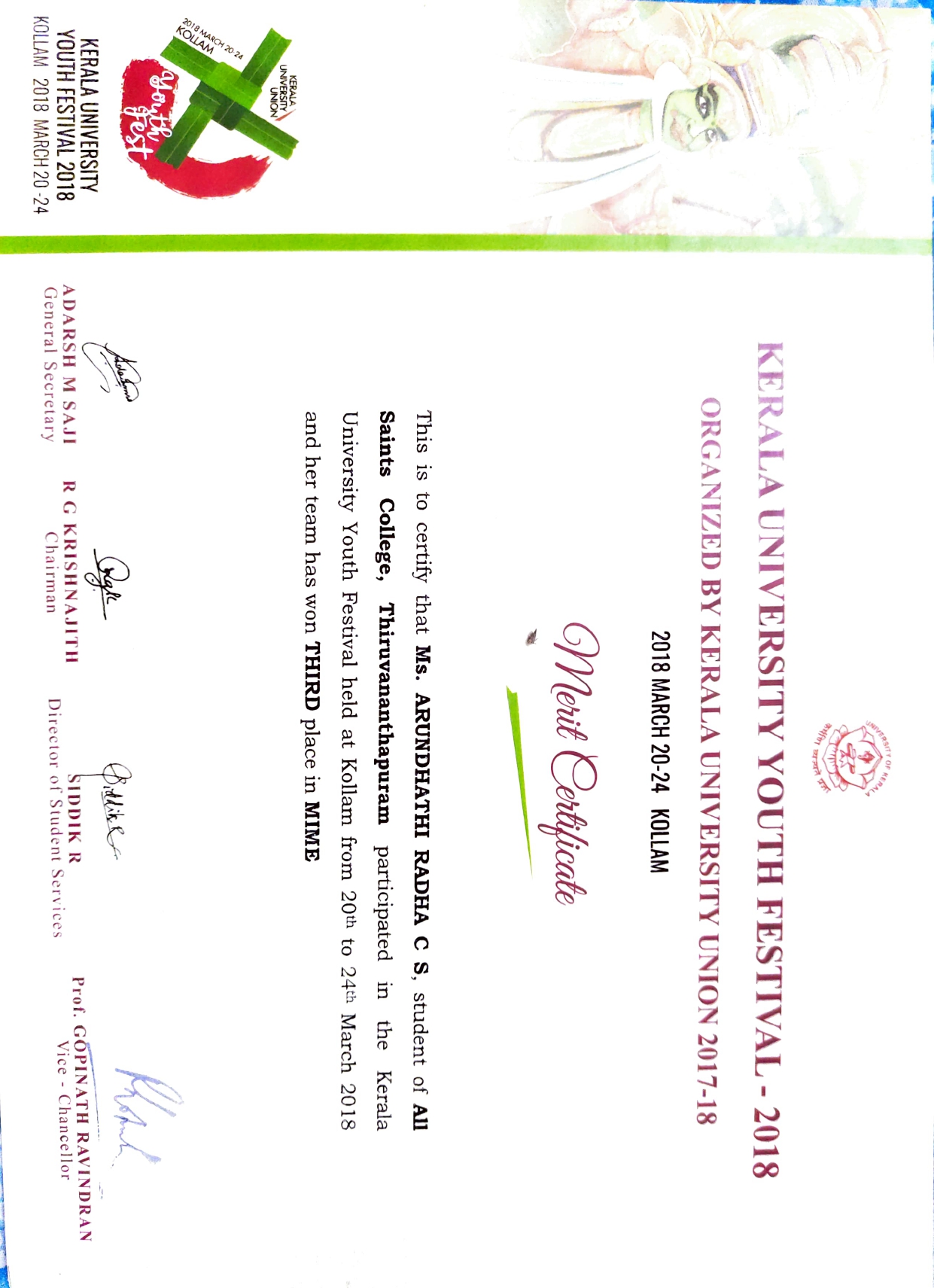 | 21 | Greeshma Asok Youth Festival | |