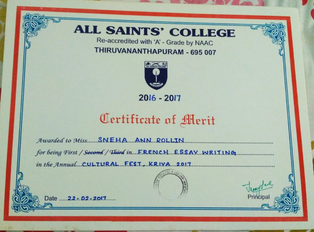 | 36 | Sneha Ann Rollin French Essay | |