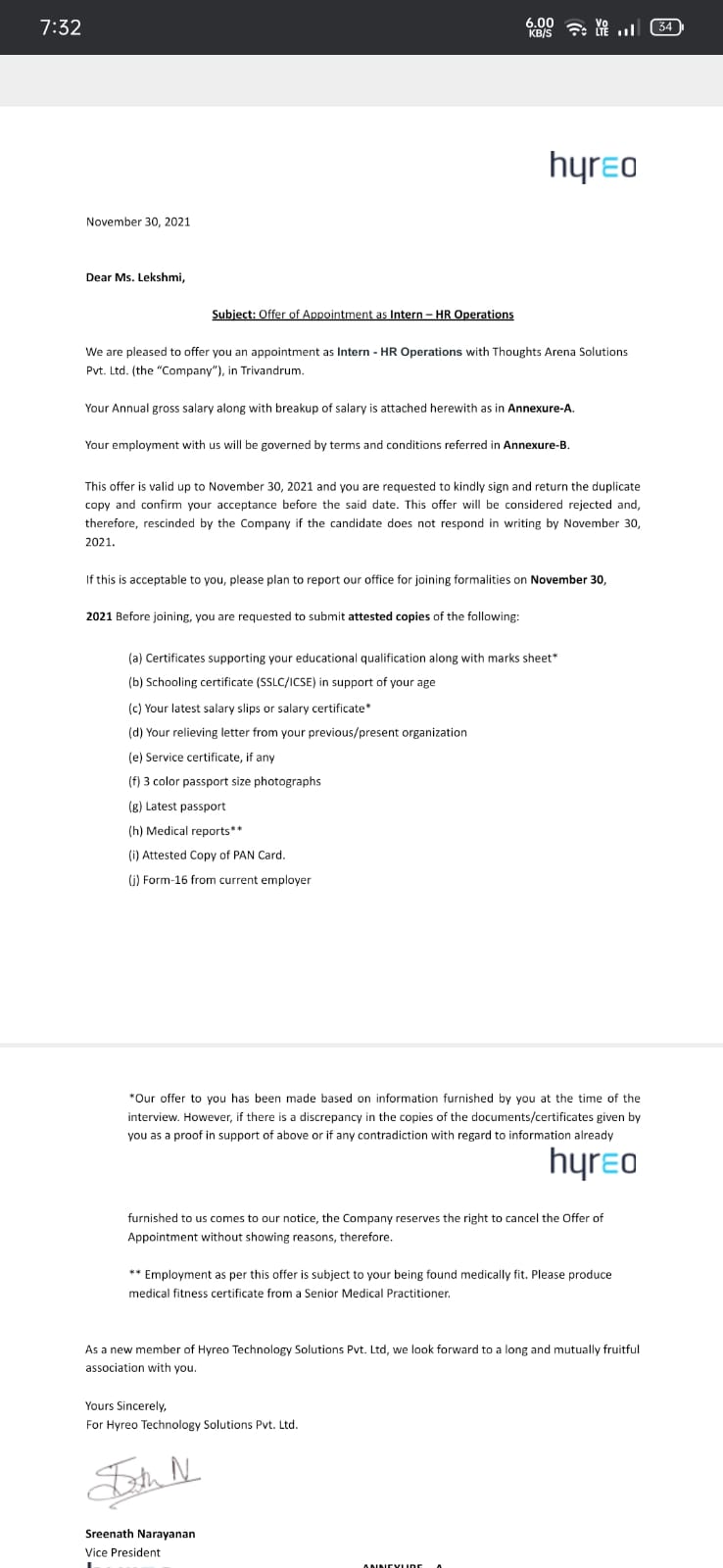 | 7 | Harishma - Offer letter | |