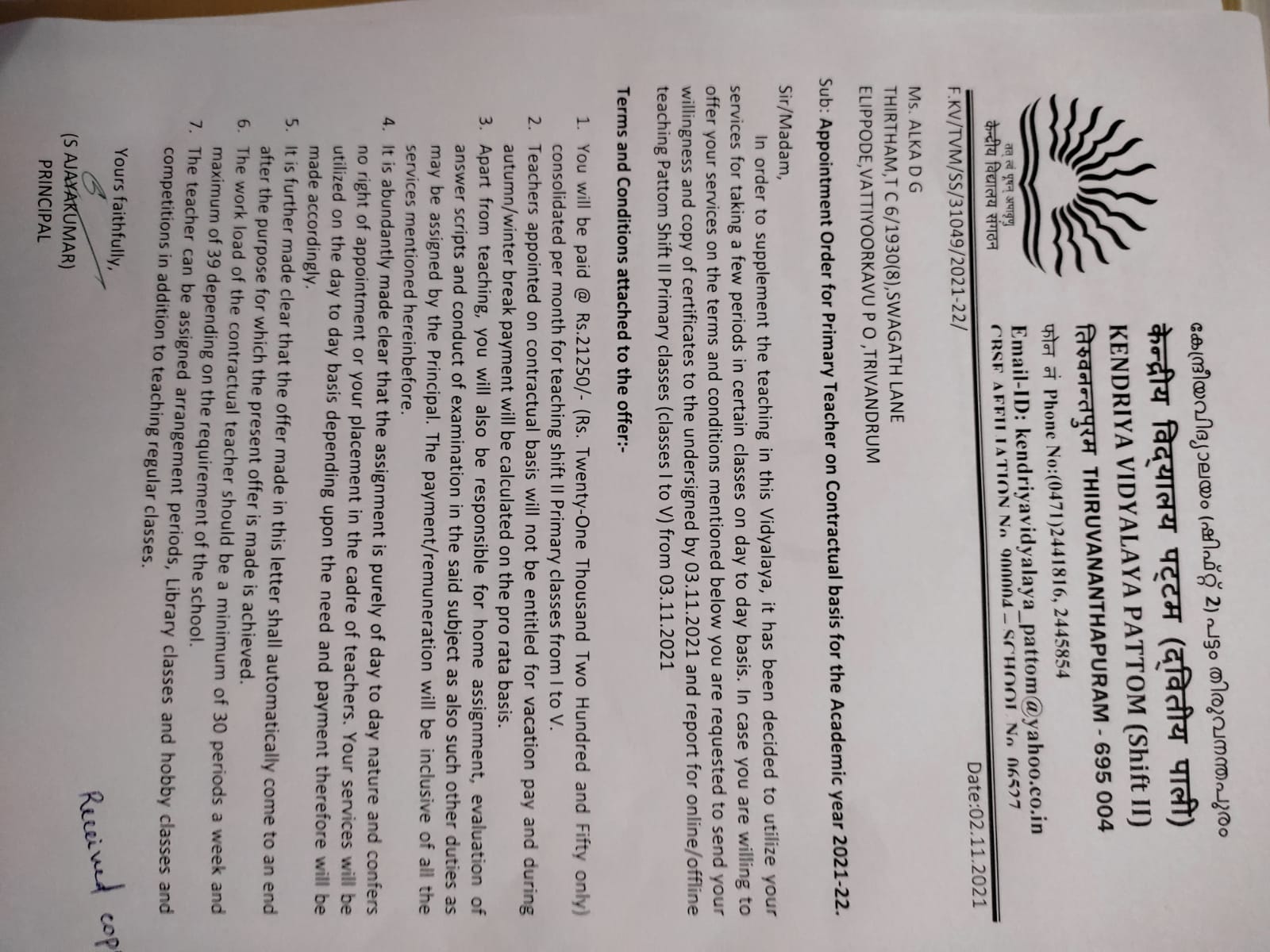 | 20 | Sandra M Pillai Offer Letter-2018-2019 | |