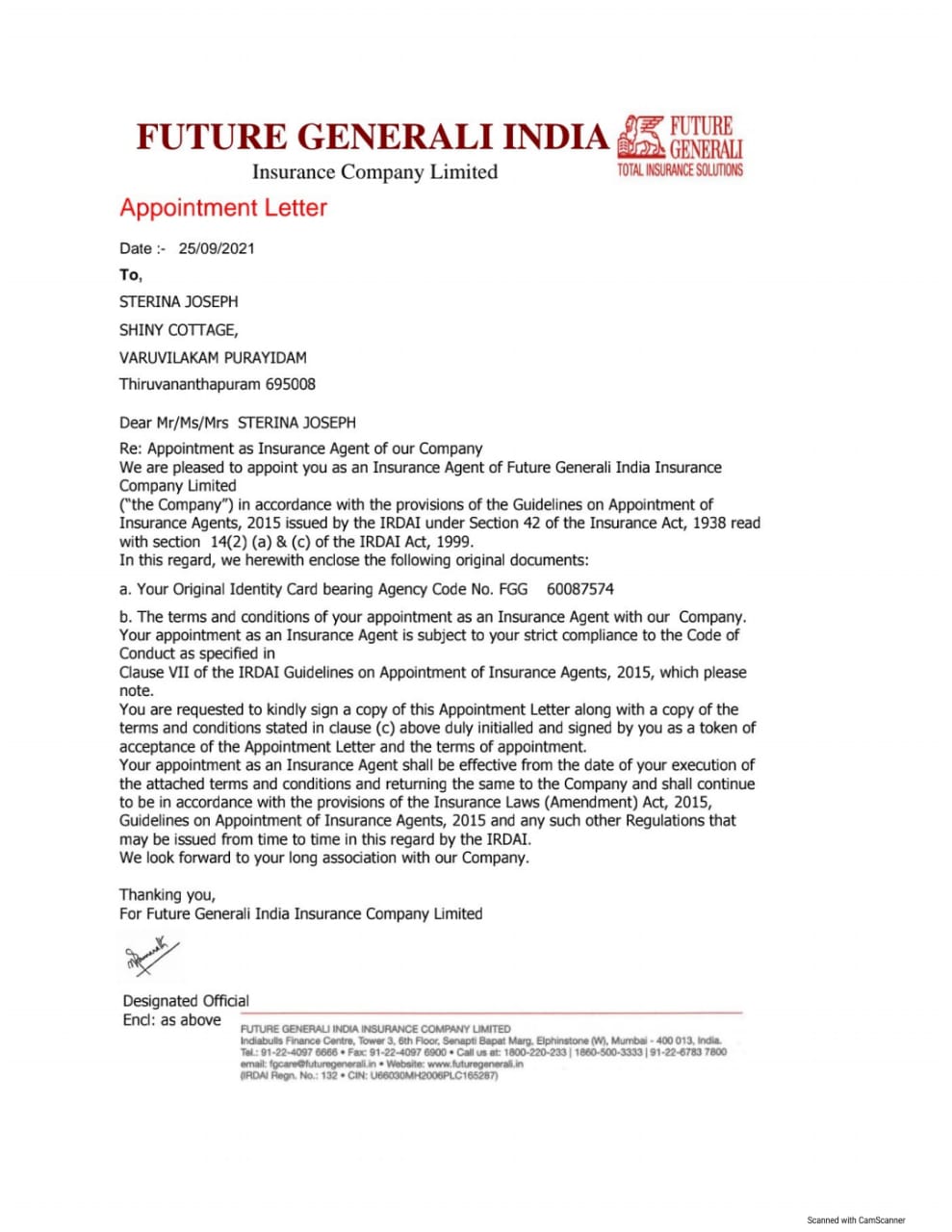 | 22 | Sterina Joseph OfferLetter | |
